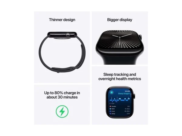 ابل ساعة الجيل العاشر جي بي إس - هيكل من الألومنيوم باللون الأسود مقاس 46 ملم مع حزام رياضي أسود - مقاس ميديم/لارج